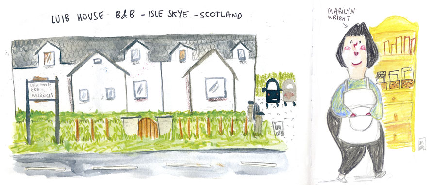 Il·lustració de la Marilyn al menjador on en va servir l’esmorzar i el seu B&B de Luib, Ille Skye, Escòcia.